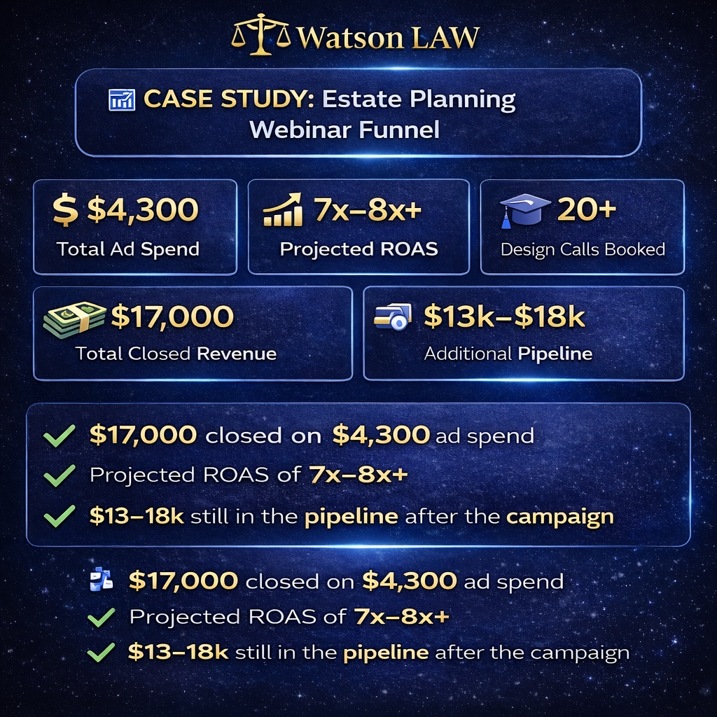 Watson Law is an estate planning firm serving families in Texas who needed a predictable way to generate qualified consultations without relying on referrals or generic legal marketing.